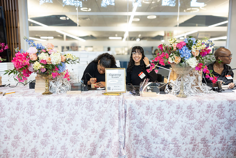 The transformation of Building 3 at the Dell Campus began with the breathtaking work of Jordan Flowers and Events, who filled the room with cascading wisteria, smilax greenery, lush boxwood hedge wall backdrops, and dramatic floral columns. Bee Lavish layered in old-world charm with a curated vintage lounge vignette and a stunning entry bar, while Premiere Events dressed every surface in rose party toile and blush velvet linens. Together, they created a space that felt like stepping onto a Regency estate set.